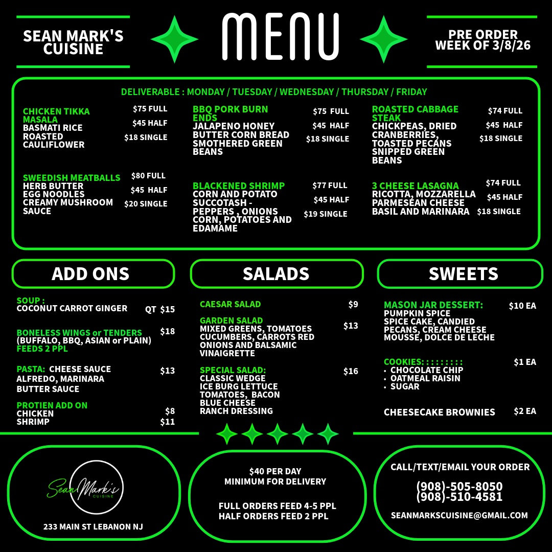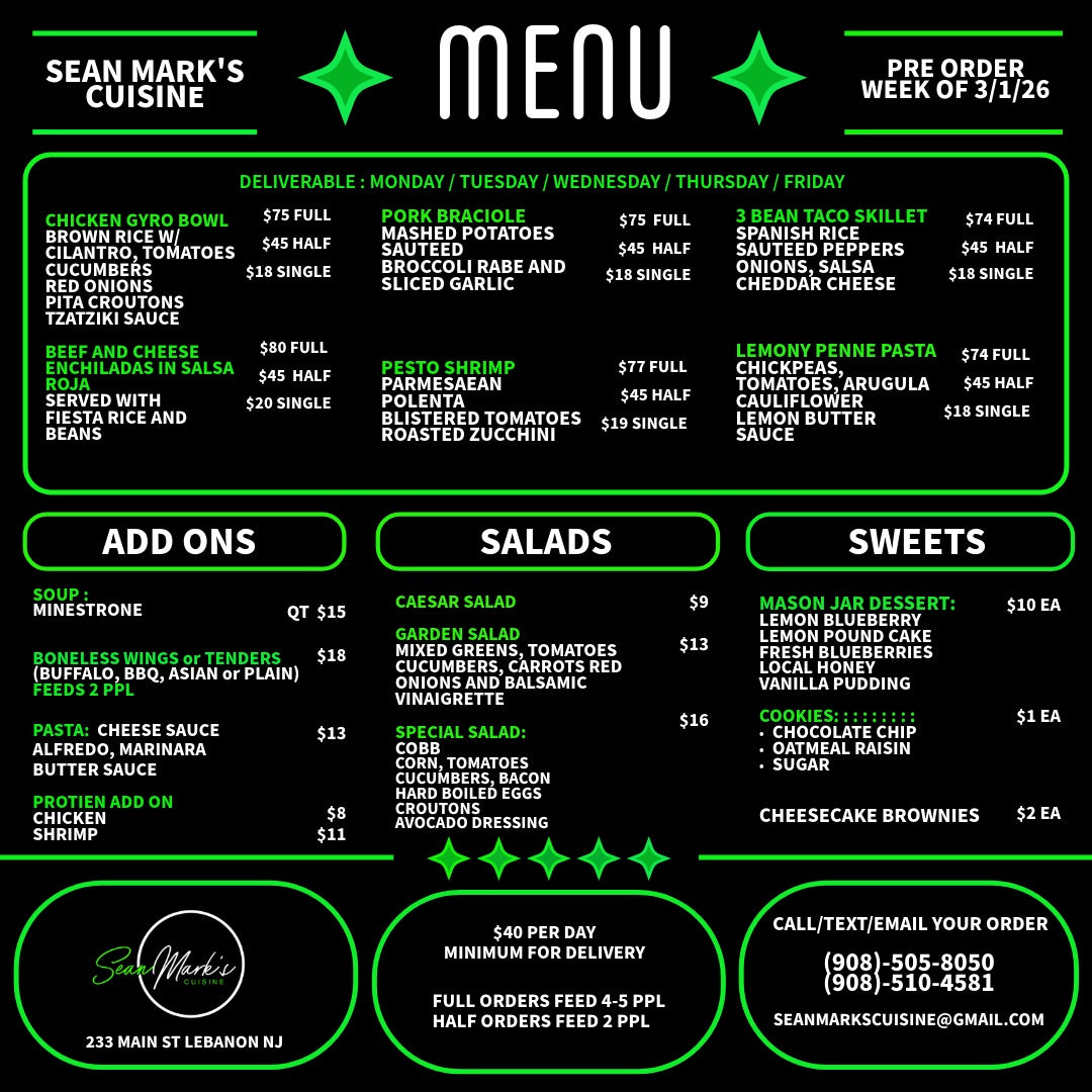 Following Weeks Menu